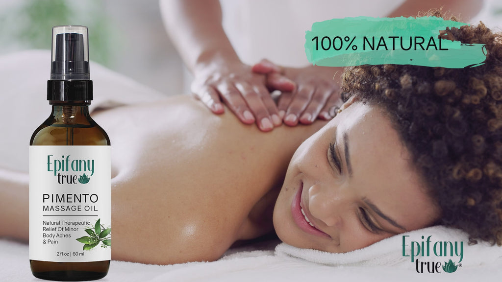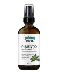 Epifany True 100% Natural Pimento Massage Oil 4oz is a therapeutic, topical remedy massage oil. Comprised of raw ingredients sourced from plants, this wholesome blend is commonly used as a natural massage oil to improve circulation as well as provide temporary relief of minor aches and pain, soreness, and discomfort.